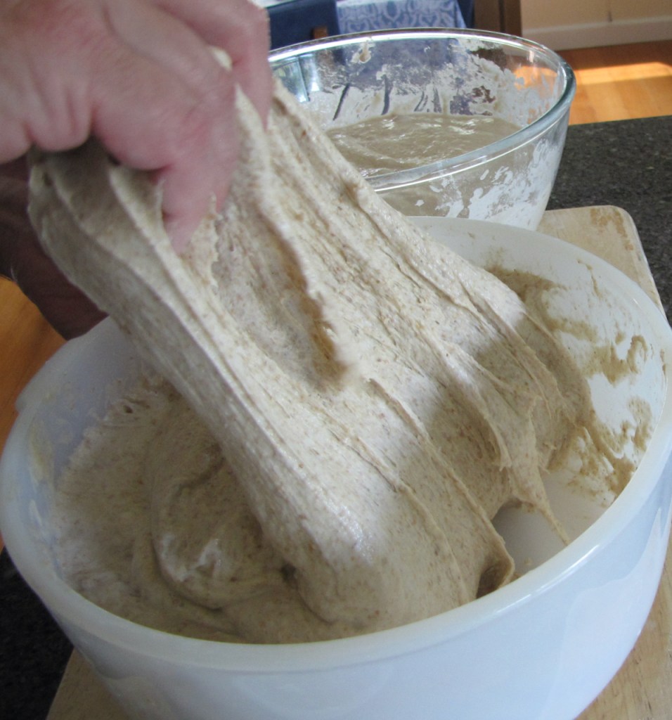 I do the same with the second dough mix, then cover the dough, before washing my sticky hand under the tap. The whole process only takes a couple of minutes.