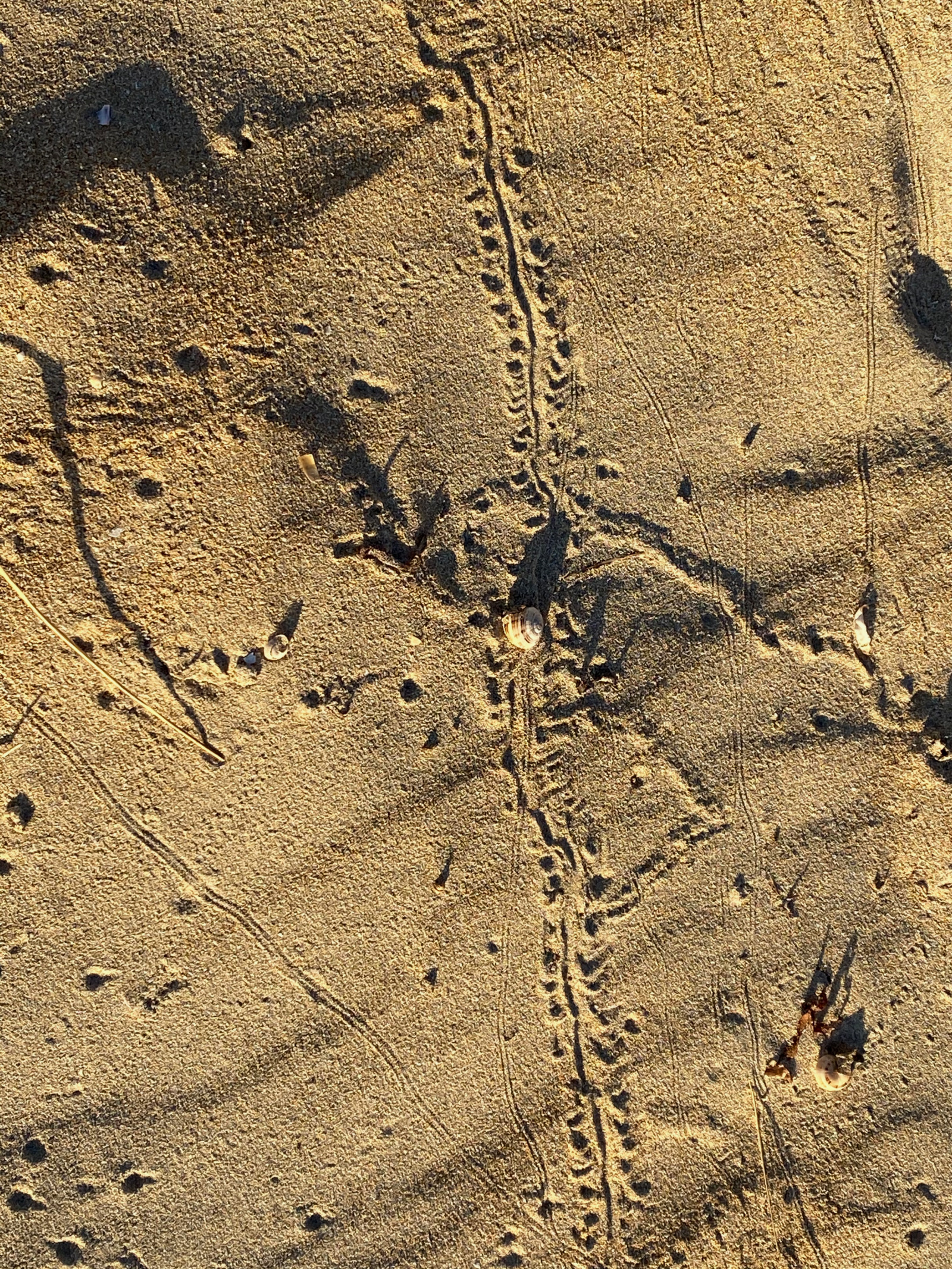 There are tracks of snakes, lizards and occasionally a dog, which makes me cross. Dogs are banned from the island, and really, the local wildlife has enough to cope with, without some entitled dog owner who thinks that the rules don’t apply to their pooch. Grrr.